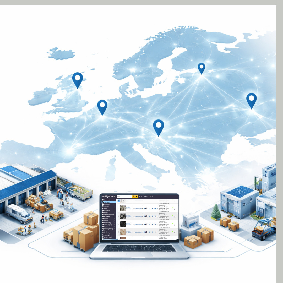 Von der Produktanlage und Datenpflege über Lager & Fulfillment bis hin zum Vertrieb: Europe-Hub verbindet alle Schritte in einem klaren Prozess.
